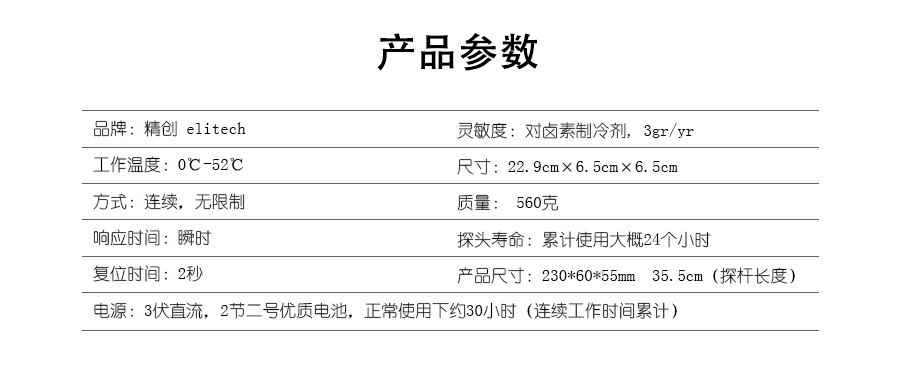 3秒響應; 在 6 秒內預熱。 包括一個額外的備用傳感頭。